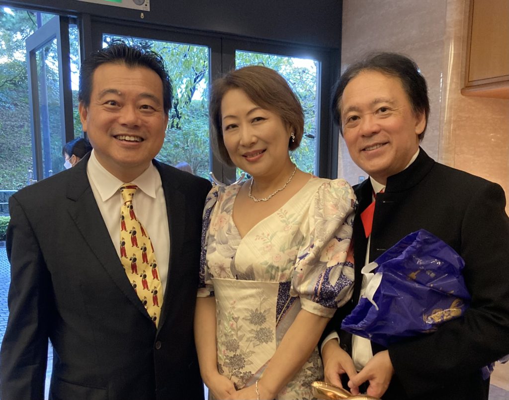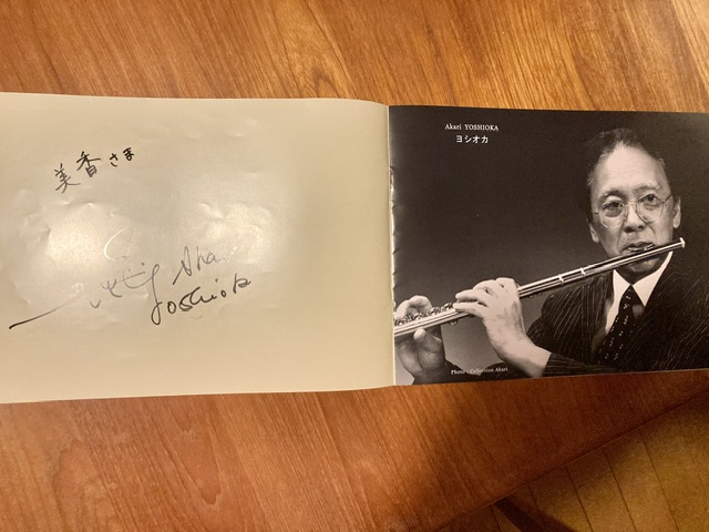 東京フィルの首席フルート奏者として今もなお第一線で活躍中の吉岡アカリ氏が還暦を迎え、そのコンサートにフルートオーケストラのコンサートマスターとして出演いたしました。吉岡アカリ氏は最も尊敬するフルート奏者の一人であり人生で最もお世話になった人。私が東フィルにゲスト首席で度々呼んでいただけるようになったのも、ウィーン留学のご縁や夫との出会いのきっかけも、全てアカリ氏のおかげ。この人がいなかったら私は今フルートを吹いていなかったかもしれません。そして写真に写るもうひと方は名古屋フィル首席フルート奏者の富久田治彦氏。この方にも名古屋フィルに何度も呼んでいただいてとてもとてもお世話になりました。実はこのお二人、京都生まれで同門で、同い年なのです。二人の大恩人との写真は私の宝物です。